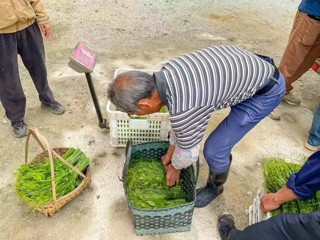 临近中午,收购商驾驶小货车来到各户地头收购龙须菜。新鲜采摘的龙须菜当场过秤,现金结算,农户在家门口便能实现日日增收。对于这种“现摘现卖、日结日清”的收购模式,种植户们表示十分满意。