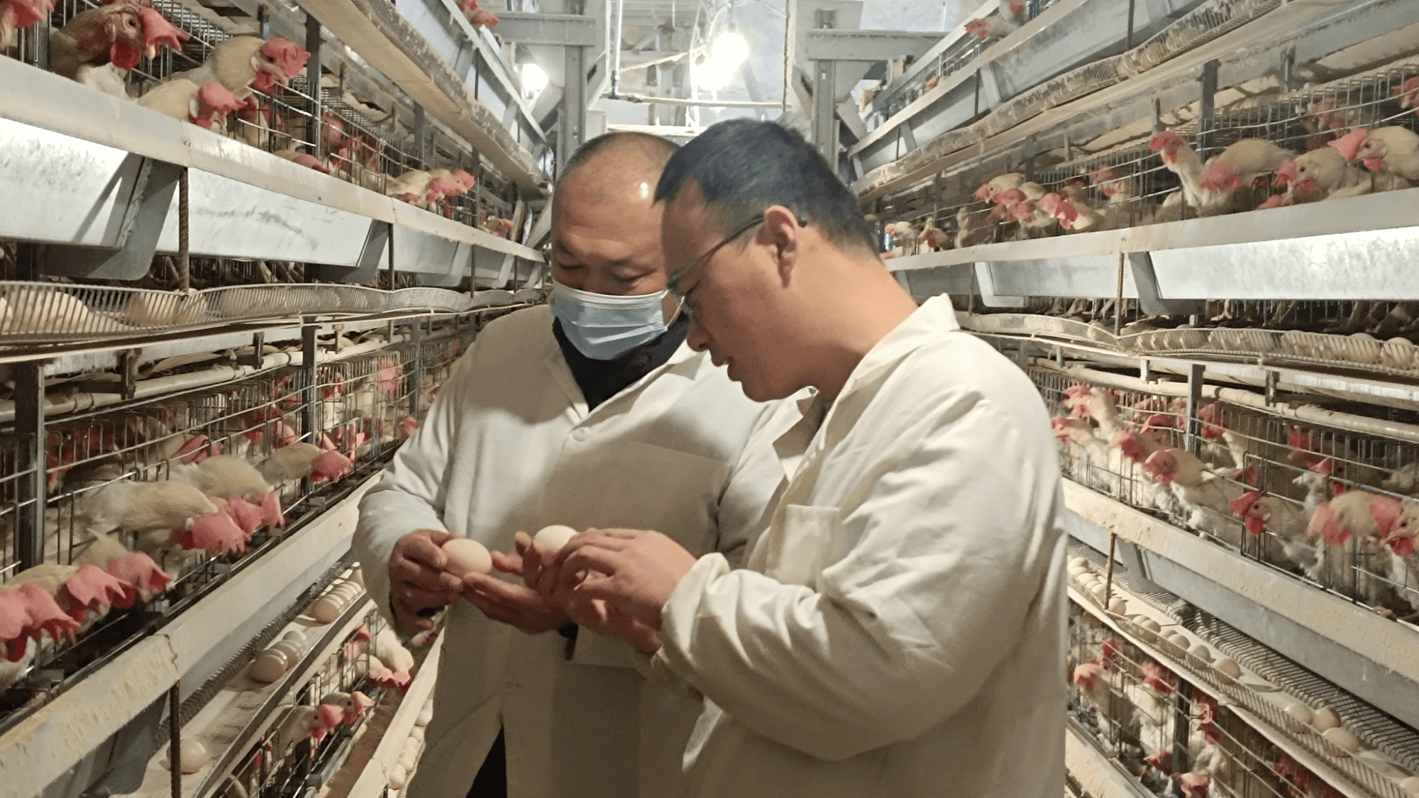 巴楚县色力布亚镇阿勒台开斯克村蛋鸡养殖示范基地内,一排排标准化鸡舍整齐排列,通风、温控设备高效运转。鸡舍内,蛋鸡精神饱满,饲养员忙碌地穿梭其间,添料、巡检,呈现出一派繁忙而有序的养殖景象。