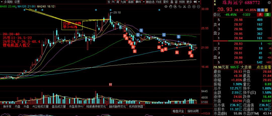 这类个股,除非基本面业绩增速变脸,否则不会轻易卖出,套着也正常网格,比如锂电机器人的珠海冠宇、航空装备的星网宇达