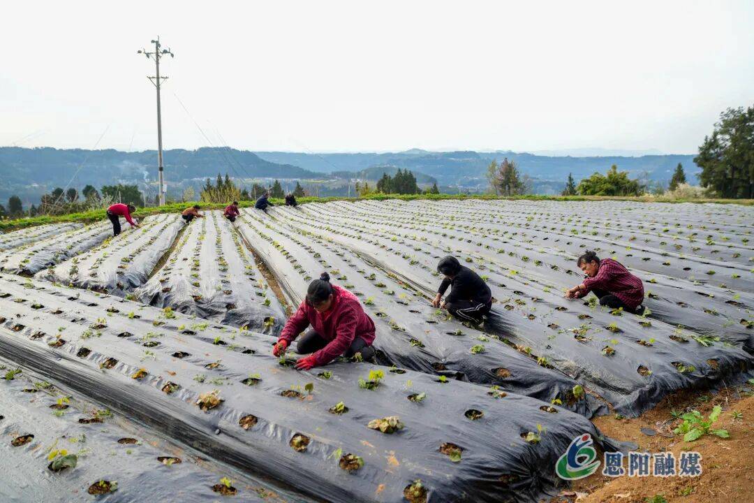与青龙村遥相呼应,春光社区的中药材种植基地里同样是一派繁忙景象。夕阳斜影,十余名村民行走田垄间,用指尖轻捻草叶并剔除,有序开展淫羊藿的田间管护工作。